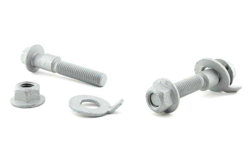 Whiteline 17mm camber bolts provide the largest adjustment range of up to +/- 0.75deg Unlike other "friction" lock designs we use a positive toothed lock washer which means NO SLIP. Simple to adjust and lock time after time with out slipping.