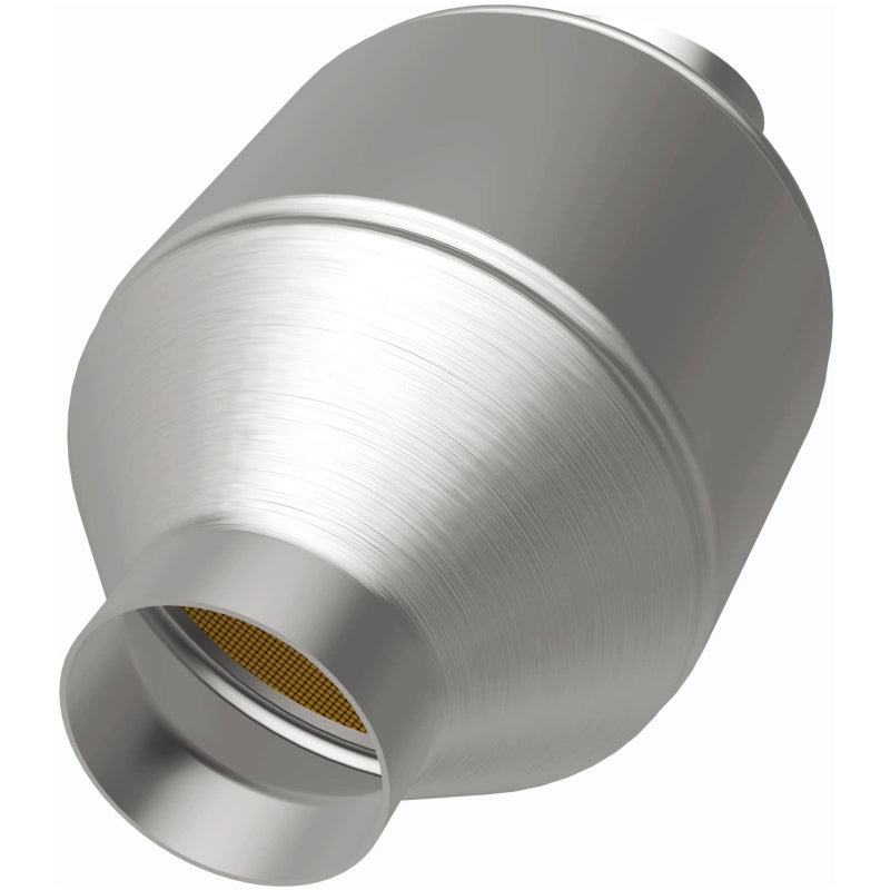Keep the check engine light off with MagnaFlow OEM Grade Federal/EPA Compliant Universal Catalytic Converter 51775. The Universal design allows the part to fit a wide array of vehicles (cutting and welding required), and the stainless steel construction of this spun body catalytic converter is highly resistant to corrosion. The single laser fusion weld of the spun body greatly reduces the possibility of a leak, and our compact, low-mass design also allows for greater thermal efficiency. This replacement part is designed to meet or exceed Federal emissions requirements set forth by the EPA, complying with legal standards for OBDII Federally registered vehicles with California or Federal/EPA Emission systems.