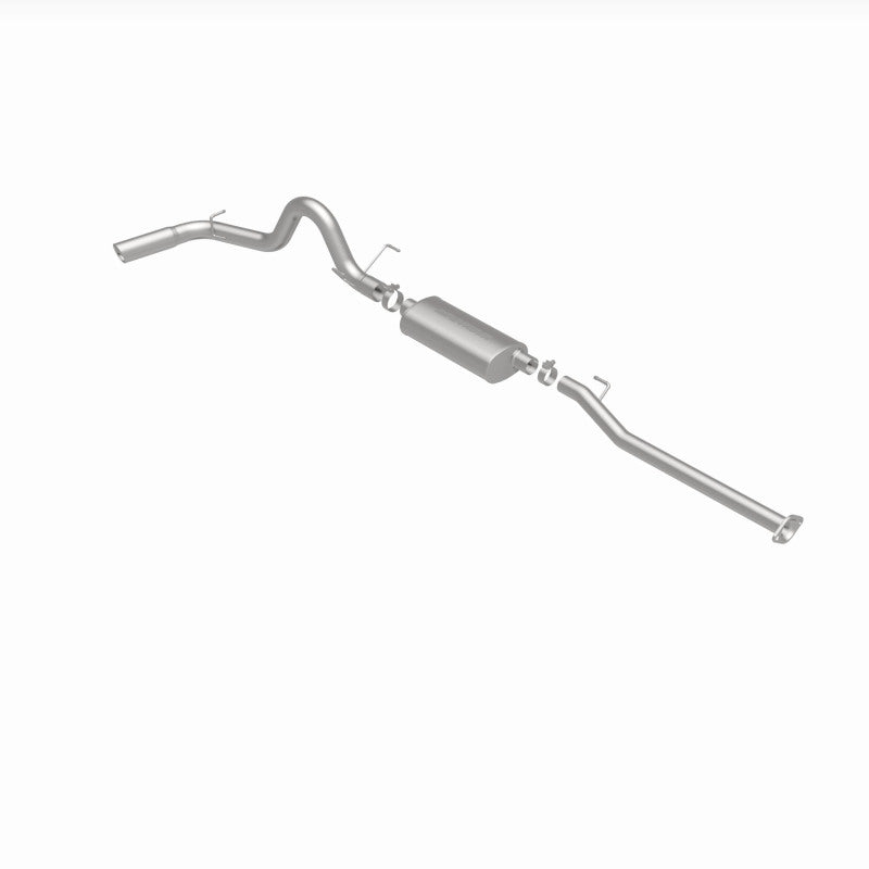 The MagnaFlow 2005-2012 Toyota Tacoma Street Series Cat-Back Performance Exhaust System 16625 brings out the personality of your 4.0L 2005-2012 Toyota Tacoma with our signature resonant, powerful engine tone and dyno-proven performance. Thanks to its fast-flowing, mandrel bent 3in. main piping and 1 Straight-Through mufflers ending in a Single Passenger Side Rear exit with 3.5in. Polished Welded-On Single Wall Angle Cut Rolled Edge tips, this Toyota Tacoma exhaust kit has the performance chops to match its sporty sound and appearance. Upgrade your ride to the next level with an exhaust that has the pipes to put other Toyota Tacoma's to shame. With this system your vehicle will be producing Moderate exterior and Mild interior sound levels while leaving other cars and trucks feeling envious at every stoplight. Exhaust kit 16625 features a cat-back layout that replaces your ride's stock exhaust components from near the catalytic converter on back. Extensive 3D scanning during development has resulted in a direct-fit design that you can easily install yourself. 16625 is produced using CNC precision robotic manufacturing techniques and is backed by MagnaFlow's 1-year limited finish warranty and limited lifetime construction warranty.